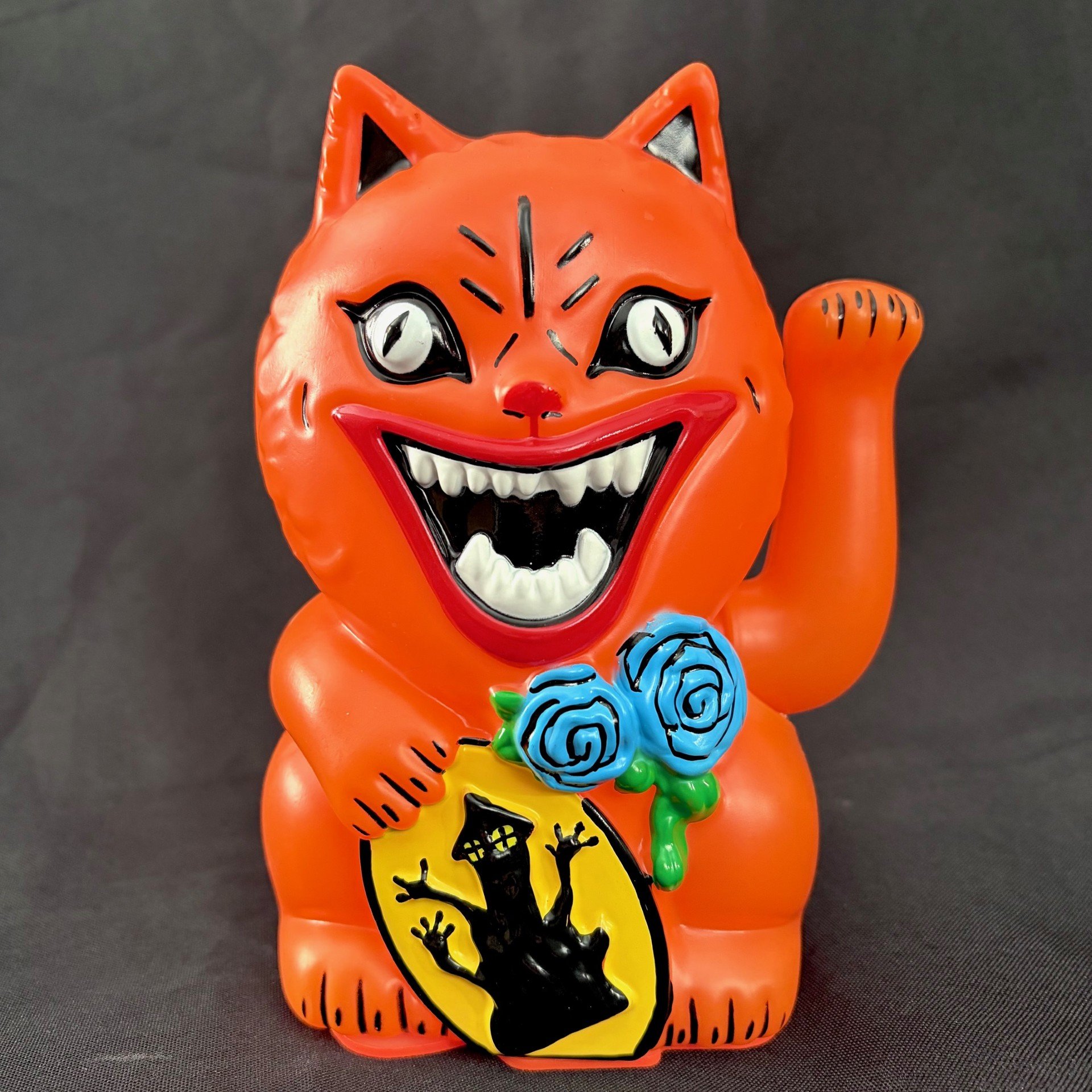 Bring a bit of the bat-shit-crazies into your home with a brand new, special "poster" edition of our very first toy, the Cat of Misfortune, inspired by one of our favorite horror movies of the 70s. Comes with a mechanical pawing arm for added menacing effect. ***Limit 2 per customer.
